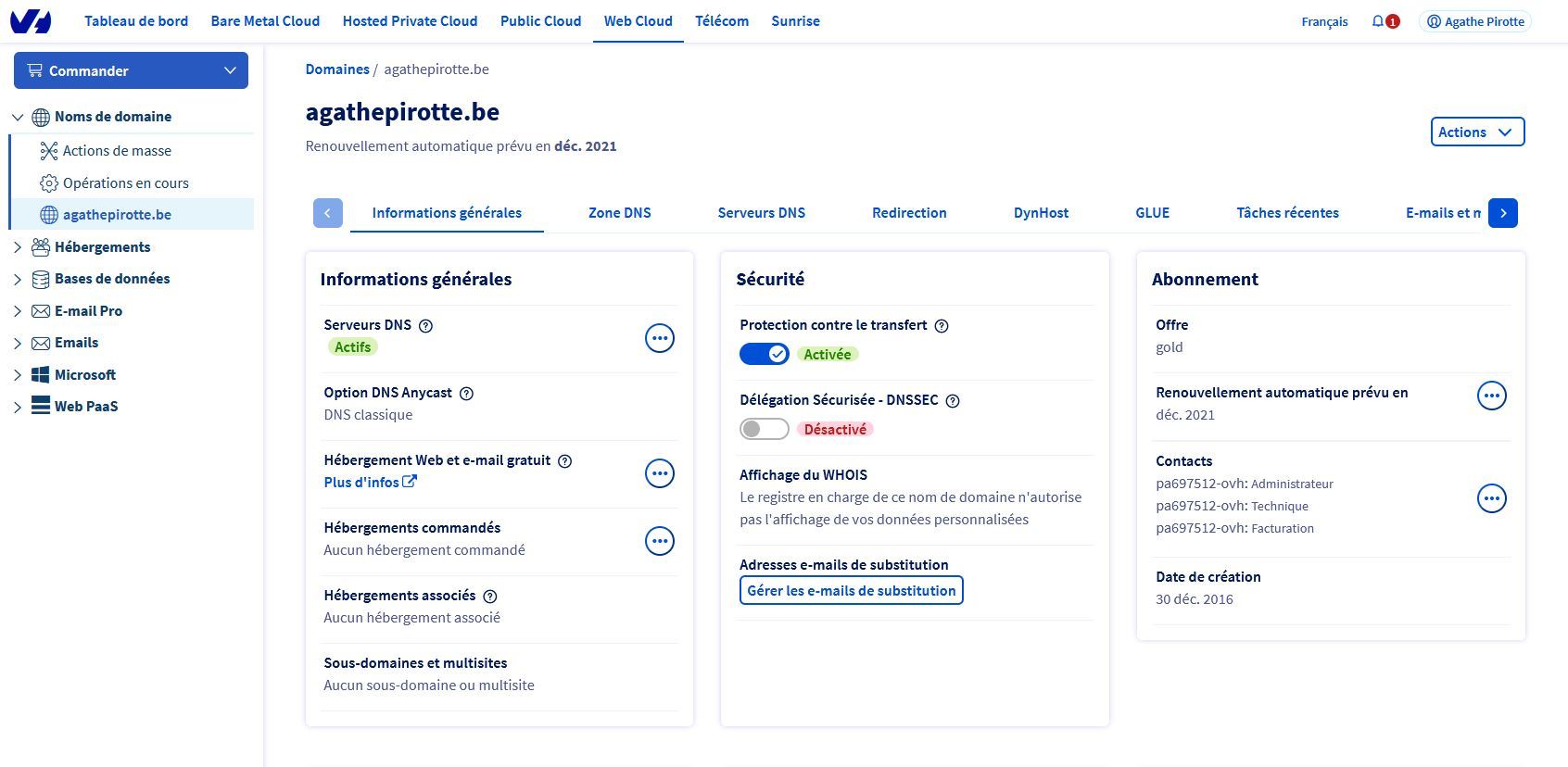 Mon site est bien hebergé sur ovh et l'abonnement est en règle.