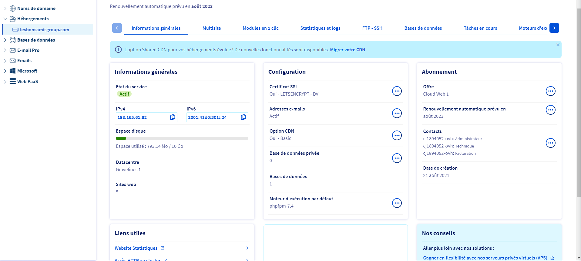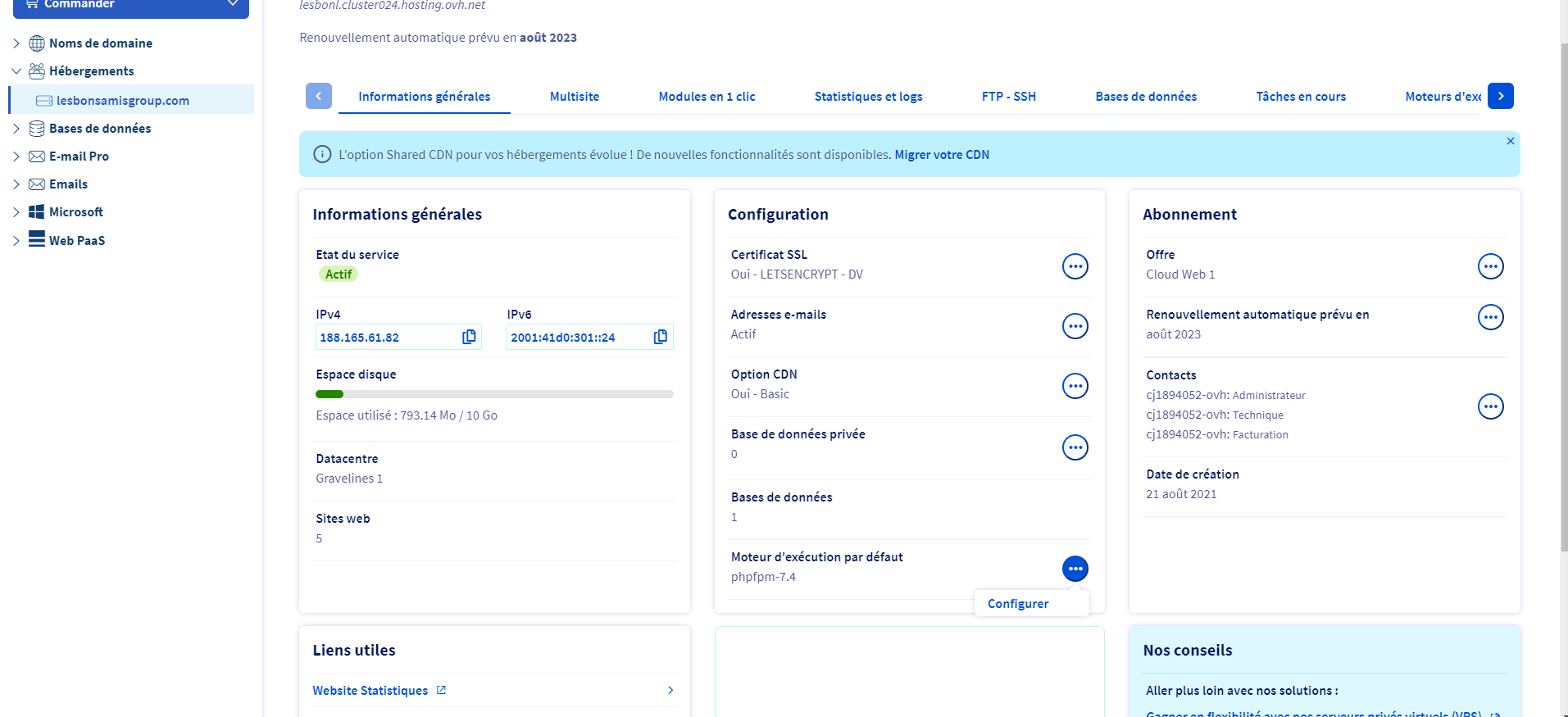 - Mon hébergement est chez OVHcloud, il s'agit-il de l'offre **OVH Cloud Web 1**