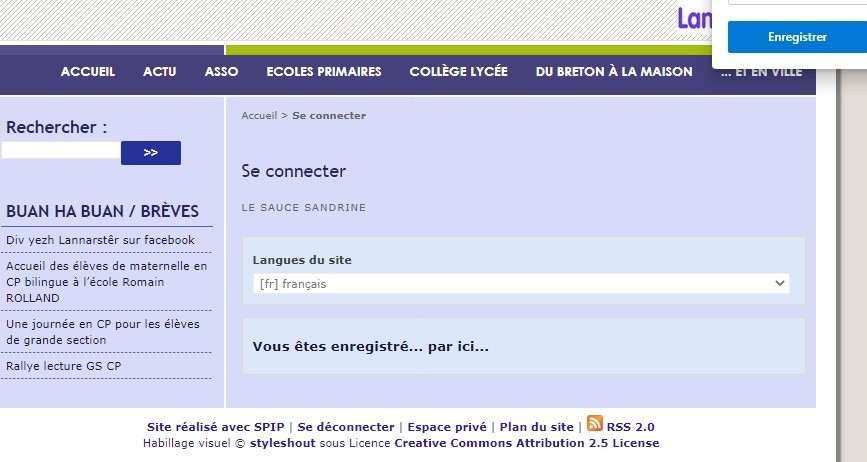 Lorsque que je me connecte voici ce qui apparaît.