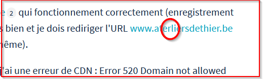 J'ai fourni cet IP mais en suivant la redirection, j'ai une erreur de CDN : Error 520 Domain not allowed on CDN / Domain not allowed on CDN.