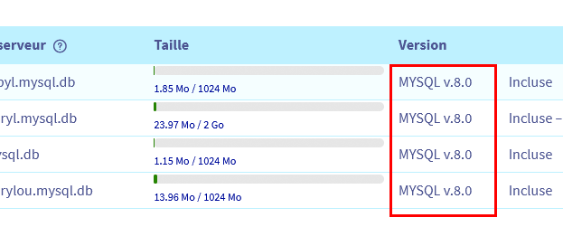 Je cherche donc à savoir la version exacte du MYSQL v.8.0 d'OVH sur mon offre.