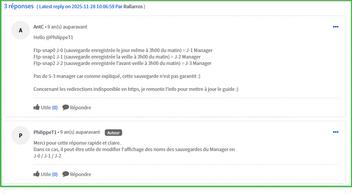 Ftp-snap1 J-1 (sauvegarde enregistrée la veille à 3h00 du matin) = J-2 Manager