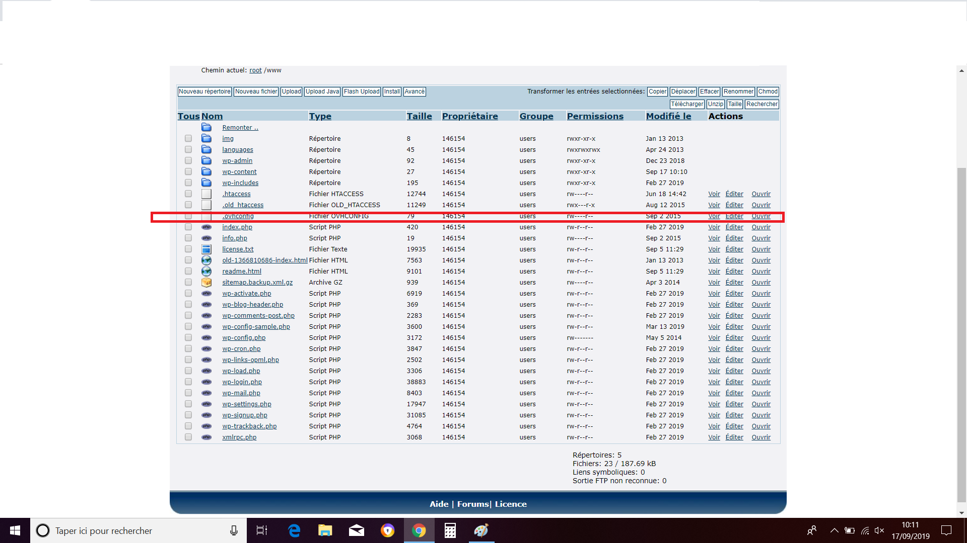 merci du conseil qui m'a bien aidé : .ovhconfig du www datait de 2013 ! Alors que l'autre correspond à ma mise à jour chez ovh en 2019...