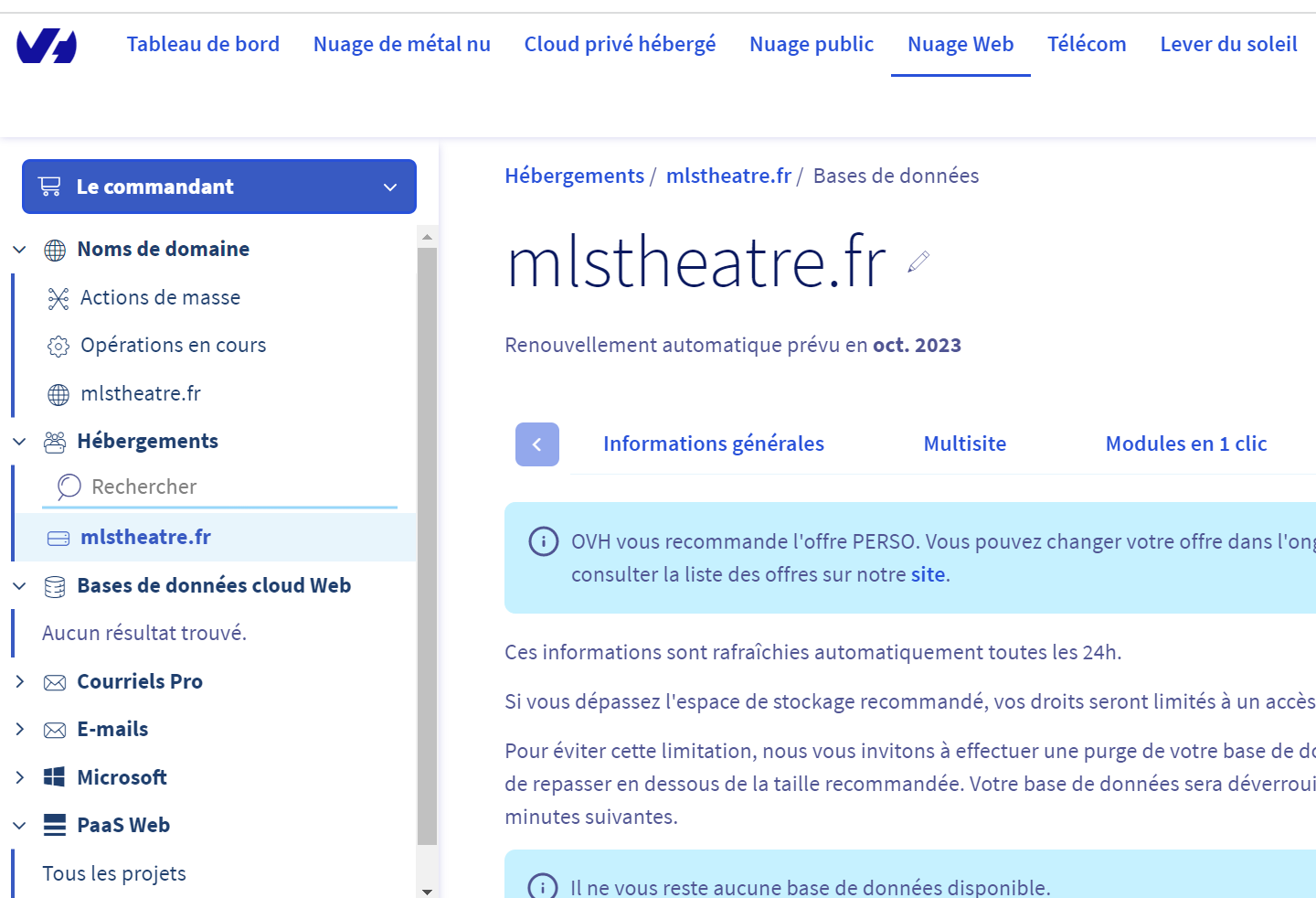 Sur mon espace client OVH rien n'a changé, mais je n'arrive plus à me connecter sur ma base de données et bien sur je n'arrive plus à insérer des données !