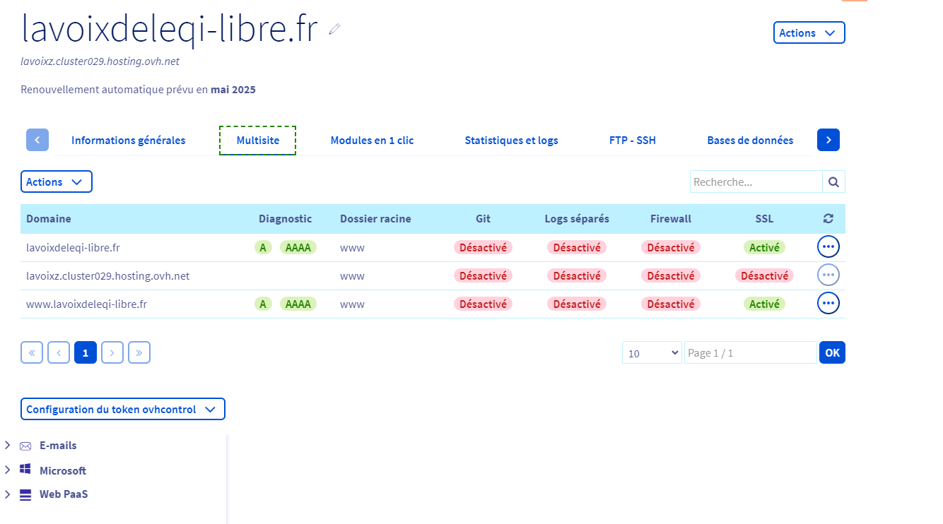 Mon domaine et sous domaine étaient déjà présents mais dans le doute j'ai modifié les modèles et j'ai généré le certificat SSL.