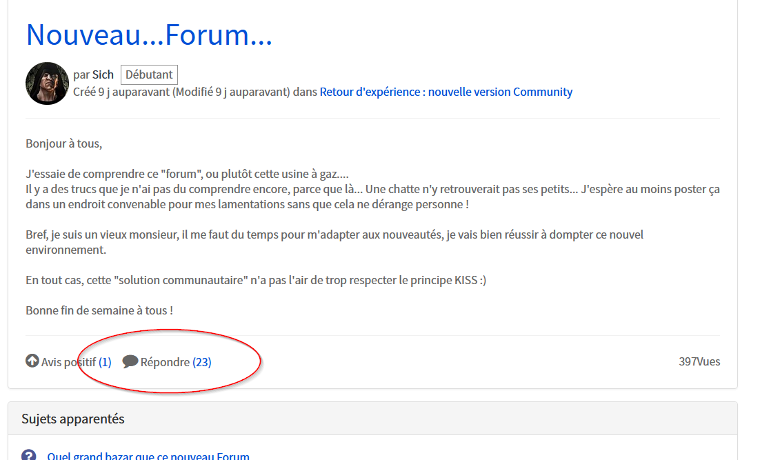Retour d'expérience : nouvelle version Community - Nouveau...Forum...