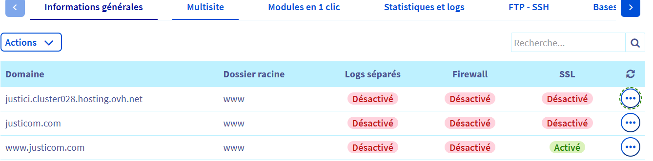 **Manager OVH > Web Cloud > Hébergement > VotreDomaine > Multisite**