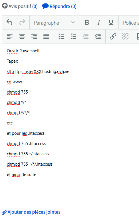 Je vais ci-dessous faire quelques tests, puisque OVH n'a pas testé le bouzin et semble avoir de réelles difficultés pour corriger les m3rd3s qui rôdent à gauche et à droite.