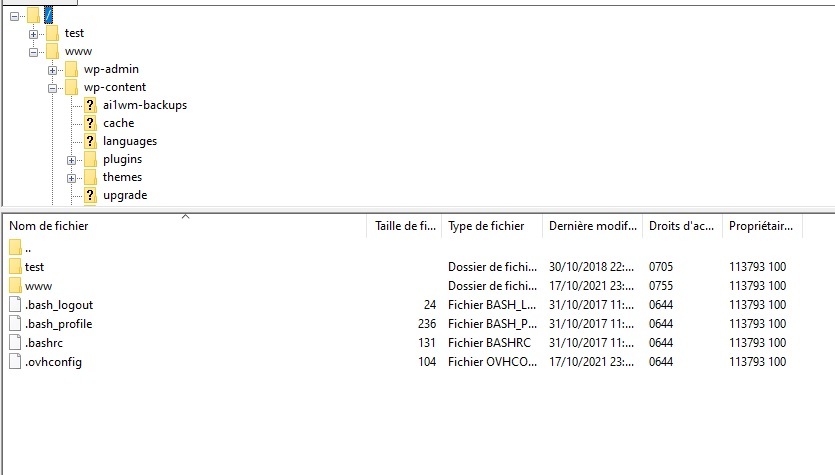 Tout d'abord, il me faudrait une copie d'écran via Filezilla :