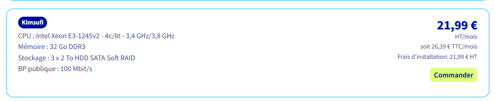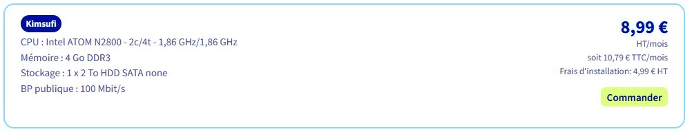 Vous avez demandé "le moins cher" dans la question, n'oubliez pas que kimsufi c'est le bas de gamme et que le niveau de support est basique. En cas de panne hardware (par exemple crash disque) le serveur sera réparé dans un délai tout à fait correct.