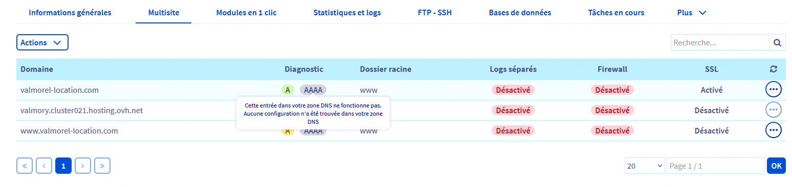 Dans le SSL multisite, je vois ce message pour la zone AAAA: