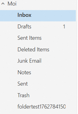 Outlook crée automatiquement ses propres dossiers IMAP (Éléments envoyés, Brouillons, Éléments supprimés…), alors que Roundcube et Android utilisent les dossiers standards du serveur (Sent, Drafts, Trash, etc.).