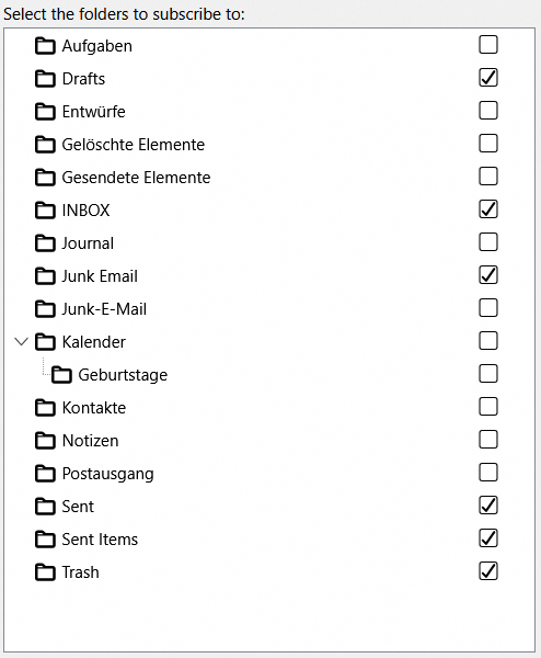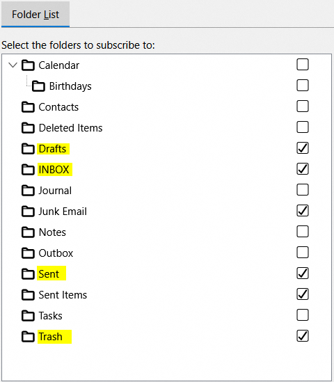 Désabonnement des dossiers IMAP par défaut pour forcer ceux d’Outlook.