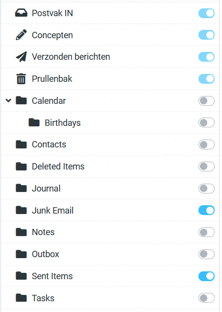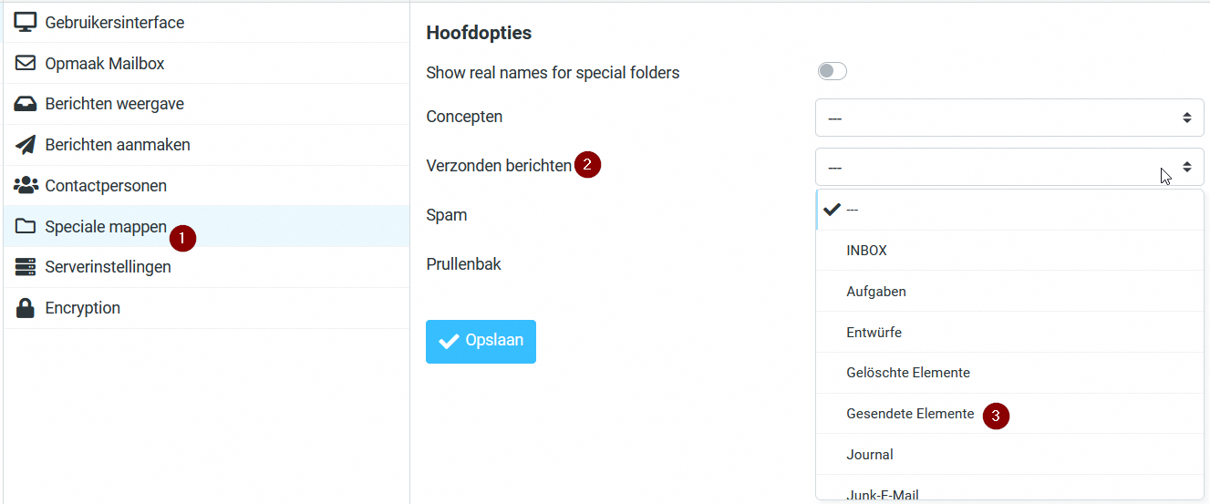 Je vais mettre Roundcube en flamand et voici ce que ça donne: (mais sur le serveur, aucun dossier n'a changé de nom-
