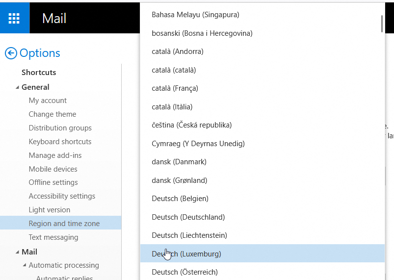 Je vais sur OWA et je mets en allemand de Luxembourg.