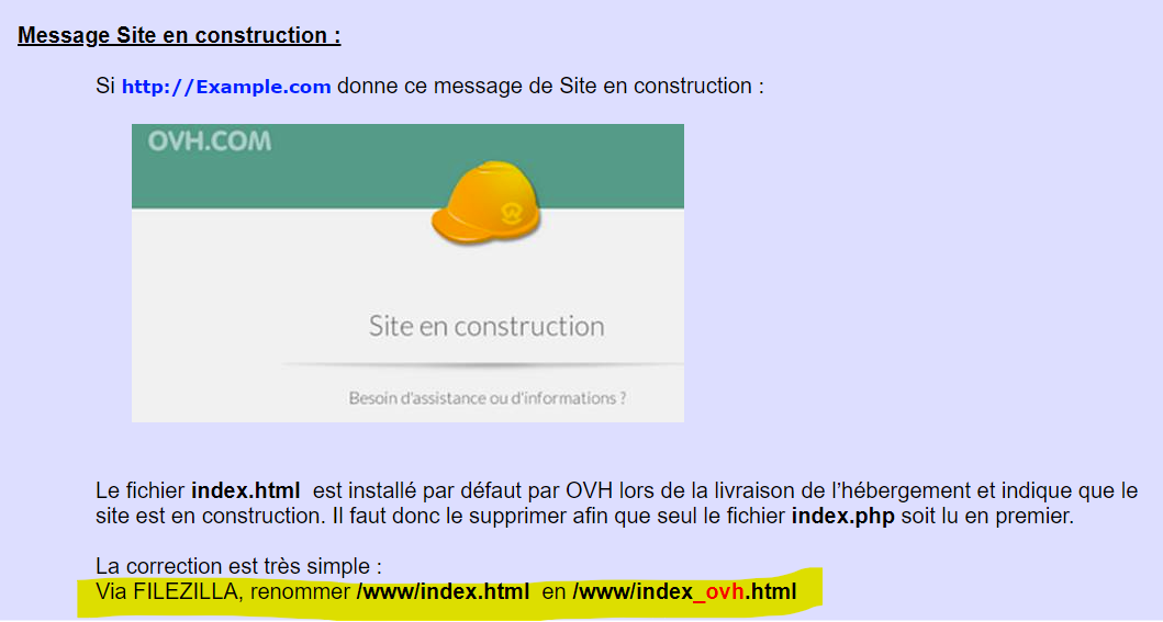 merci de l'info, fini par reussir - processus d'installation terminé tout s'est à peu pres bien passé, maitenant, je me retrouve avec une page "site en construction" ...