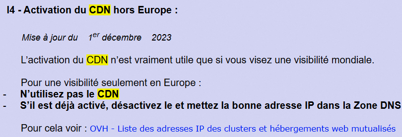 Voir dans mon guide le paragraphe : I4 - Activation du CDN hors Europe :