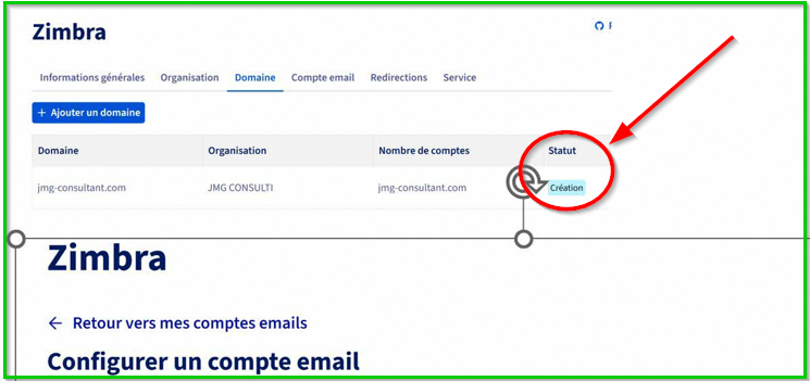 Comment créer un email ZIMBRA, Domaine n'apparait pas