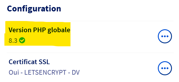 Puis dans la partie PHP, vous préciser de choisir PHP 7.4 ou 8.1 mais les images choisies montre PHP8.3 surligné en jaune. Est-ce important ?
