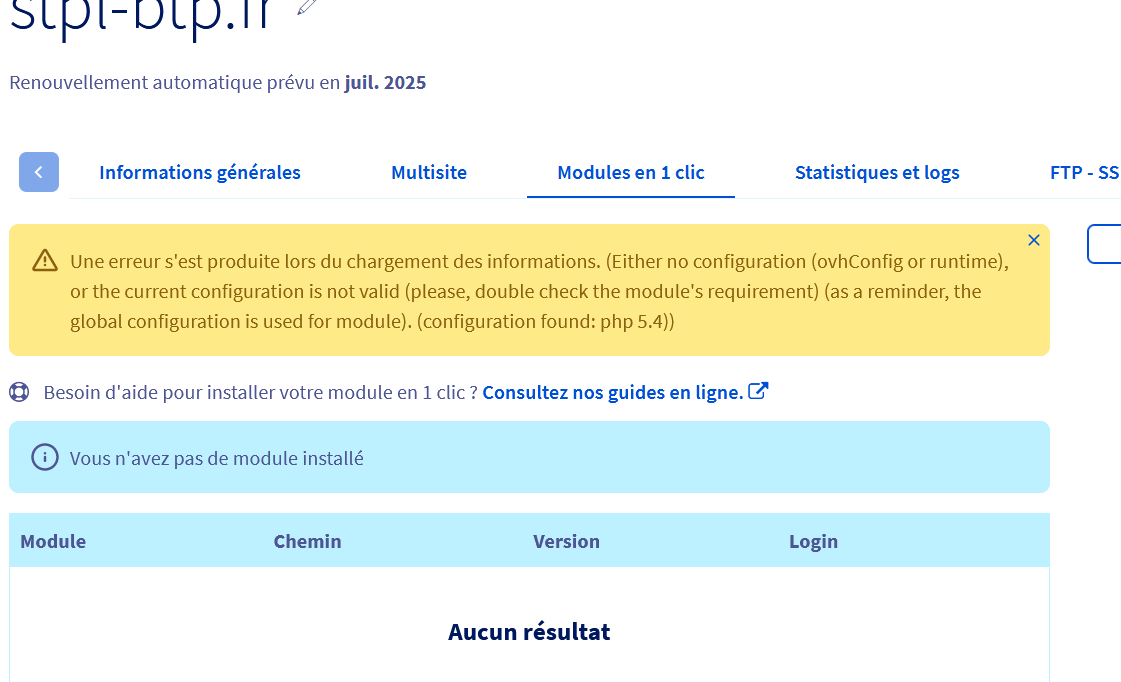 Je n'arrive pas à installer wordpress sur le site, le module en 1 clic de OVH me dit que ce n'est pas la bonne version de php...