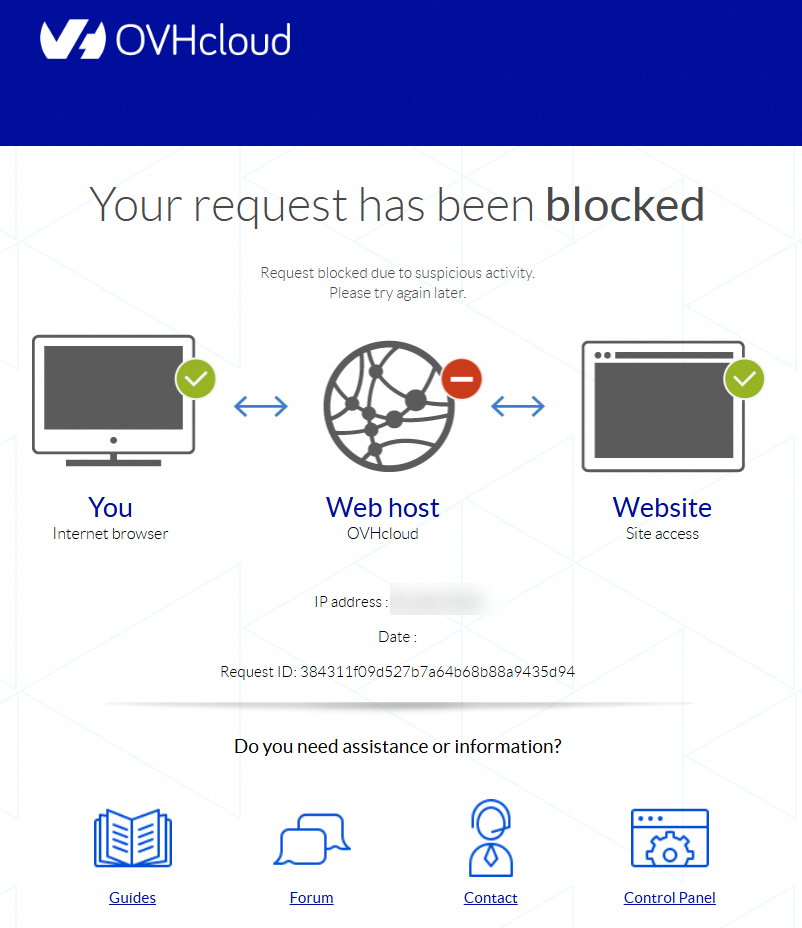 Je vous confirme que nos administrateurs ont débloqué manuellement votre adresse IP et on lancé une mise à jour sur notre infrastructure pour éviter à nouveau cette situation.