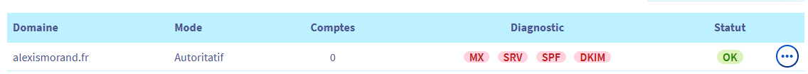 MX , SRV , SPF c'est ok , je ne sais pas ce que j'ai effectué pour en arrivé la , le résultat compte , par contre DKIM est en rouge , je dois rentrer la valeur dans CNAME ??voici ce que cela me donne