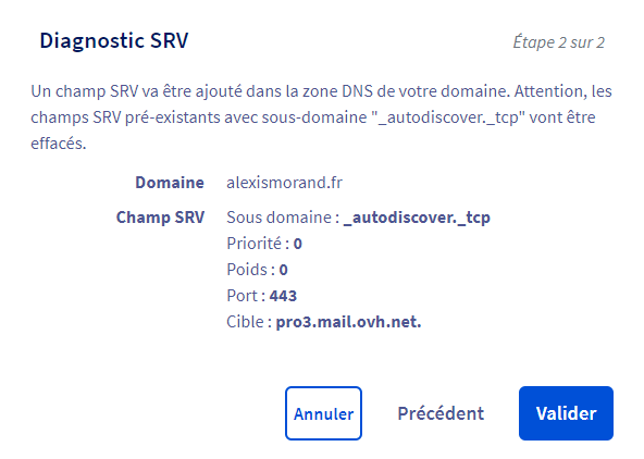 et apres est apparu ces autres champs sur OVH , donc j'ai cliqué sur chaque banniere mx, srv... et ca me demandais de valider a la fin