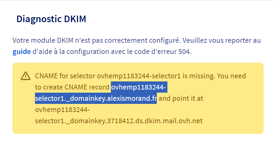 et on ne peut pas vérifier vos DKIM sans connaître ce qu'il y a dans les serveurs DNS d'OVH.