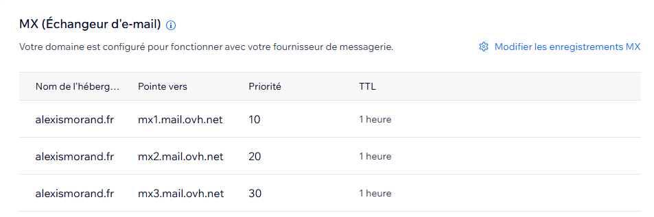 Par contre vous pouvez regarder ce qu'il ya dans votre zone DNS chez OVH et faire du recopiage vers Wix.