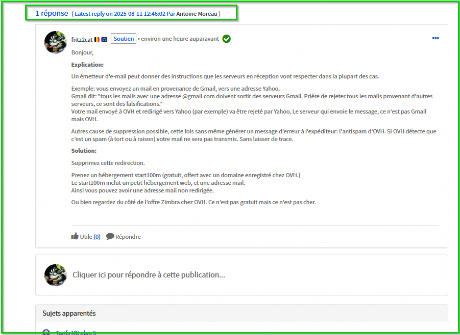 Votre mail envoyé à OVH et redirigé vers Yahoo (par exemple) va être rejeté par Yahoo. Le serveur qui envoie le message, ce n'est pas Gmail mais OVH.