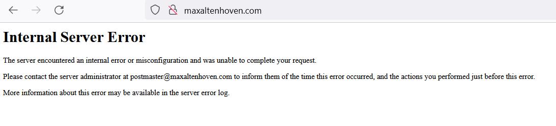 Please contact the server administrator at postmaster@www.maxaltenhoven.com to inform them of the time this error occurred, and the actions you performed just before this error.