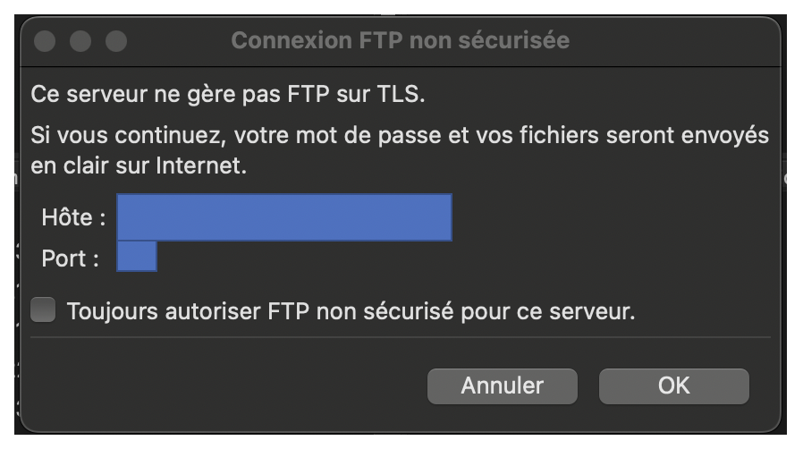 - Serveur non sécurisé, celui-ci ne supporte pas FTP sur TLS
