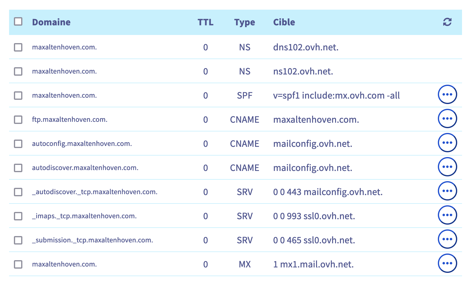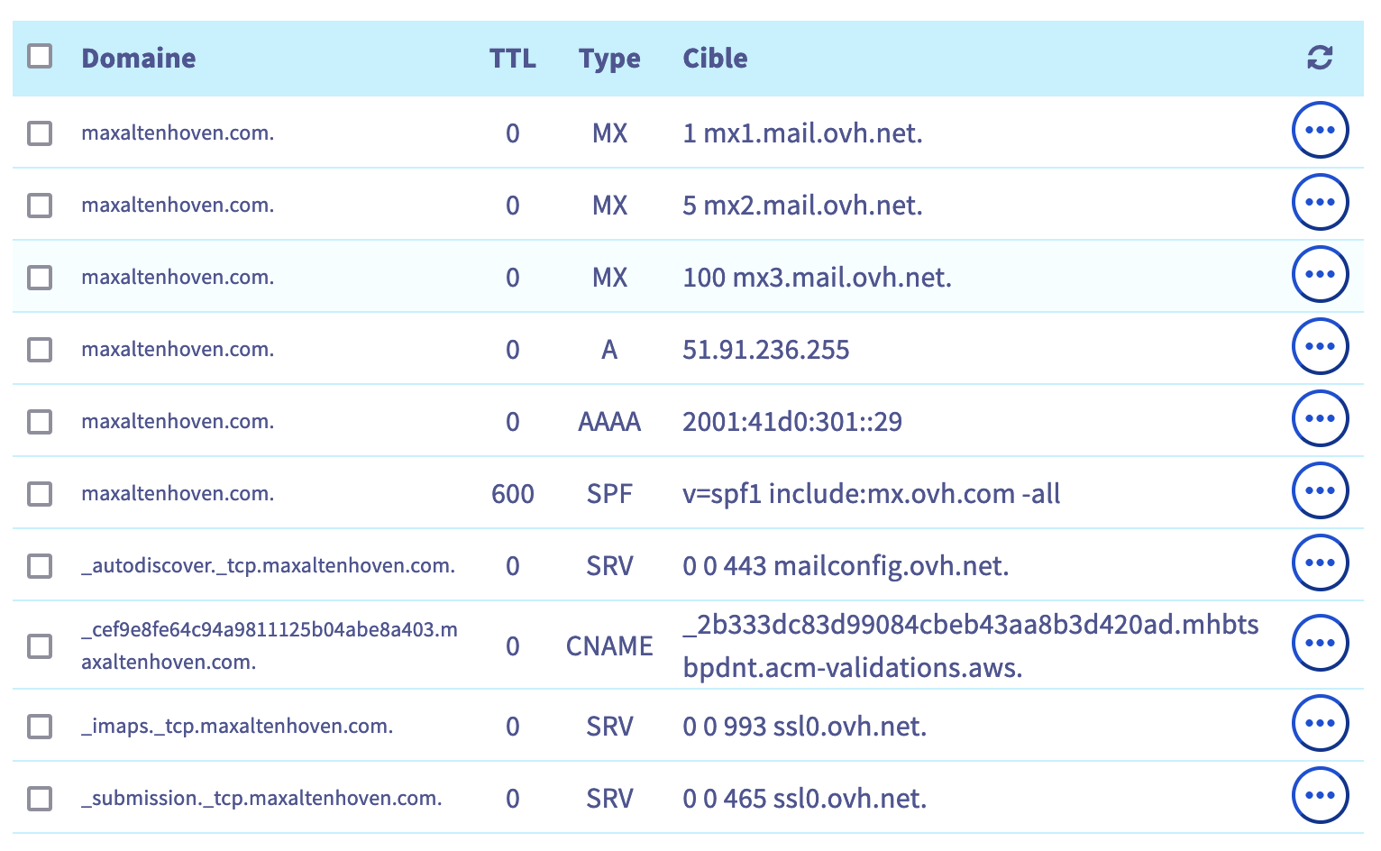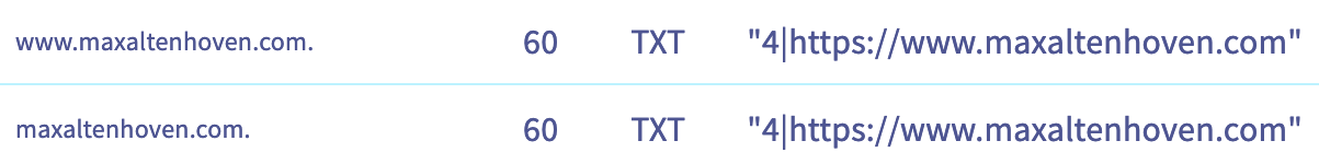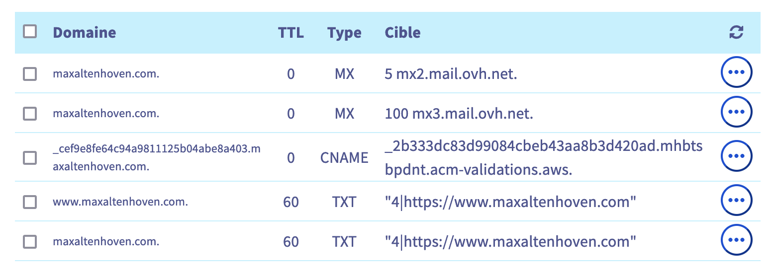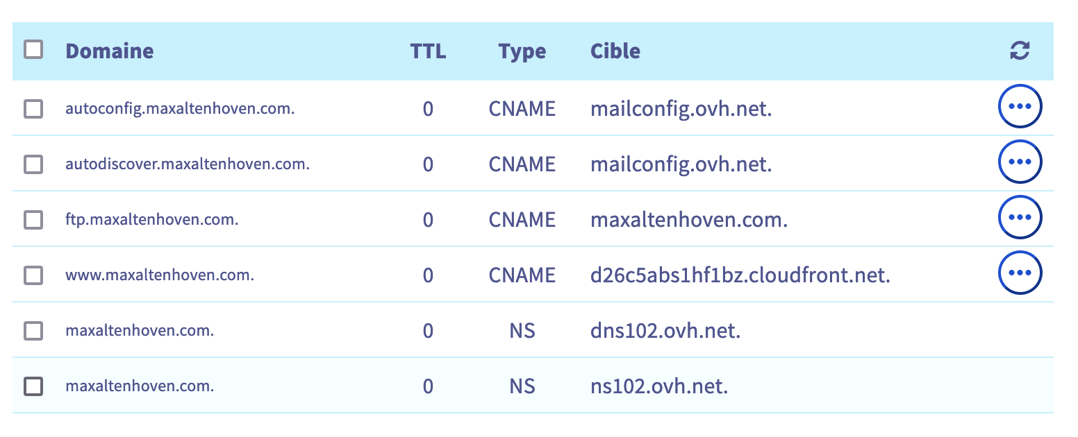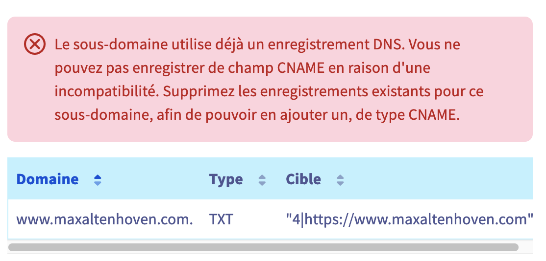 Résultat: vous n'avez plus aucun enregistrement A ni CNAME pour maxaltenhoven.com ni pour www.maxaltenhoven.com