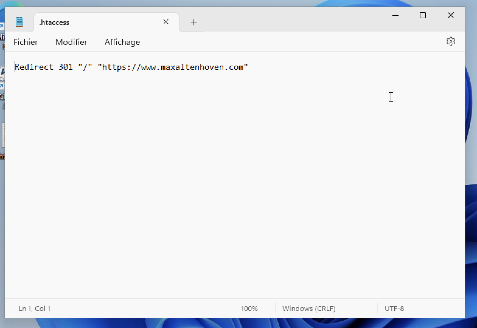 Au moins pour faire fonctionner votre adresse maxaltenhoven.com (sans www) , au lieu d'avoir internal server error comme sur la copie d'écran que j'ai postée 10 messages plus haut. ```