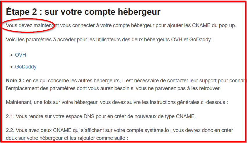 J'ai souscrit à des serveurs ainsi qu'un nom de domaine sur OVH. Après avoir effectué les réglages DNS comme indiqué sur SystemeIO (mon créateur de page de vente), j'avais bien accès à mon site internet.
