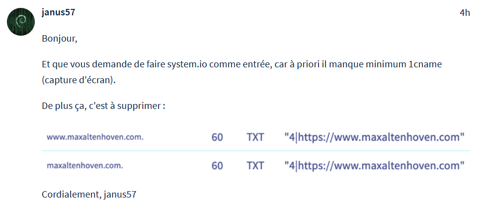Dites un peu, l'autre conversation https://community.ovhcloud.com/community/fr/impossible-de-configurer-mon-dns-page-systeme-io?id=community_question&sys_id=7333bd44b55a0ad0f078da7e5576c922 concernait-elle le même domaine ?