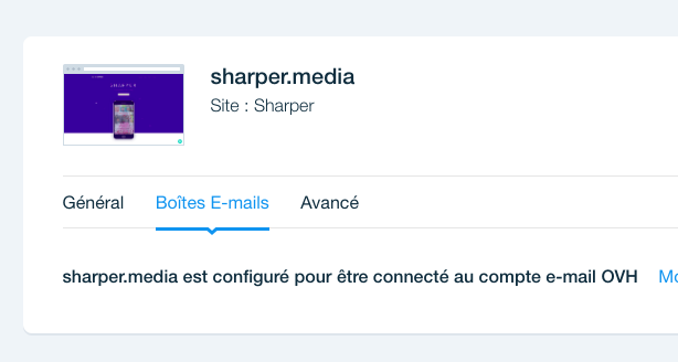 - J'ai également pris un Pack MXPLAN 1 hosting sur ovh pour pouvoir avoir ma boite mail contact@sharper.media