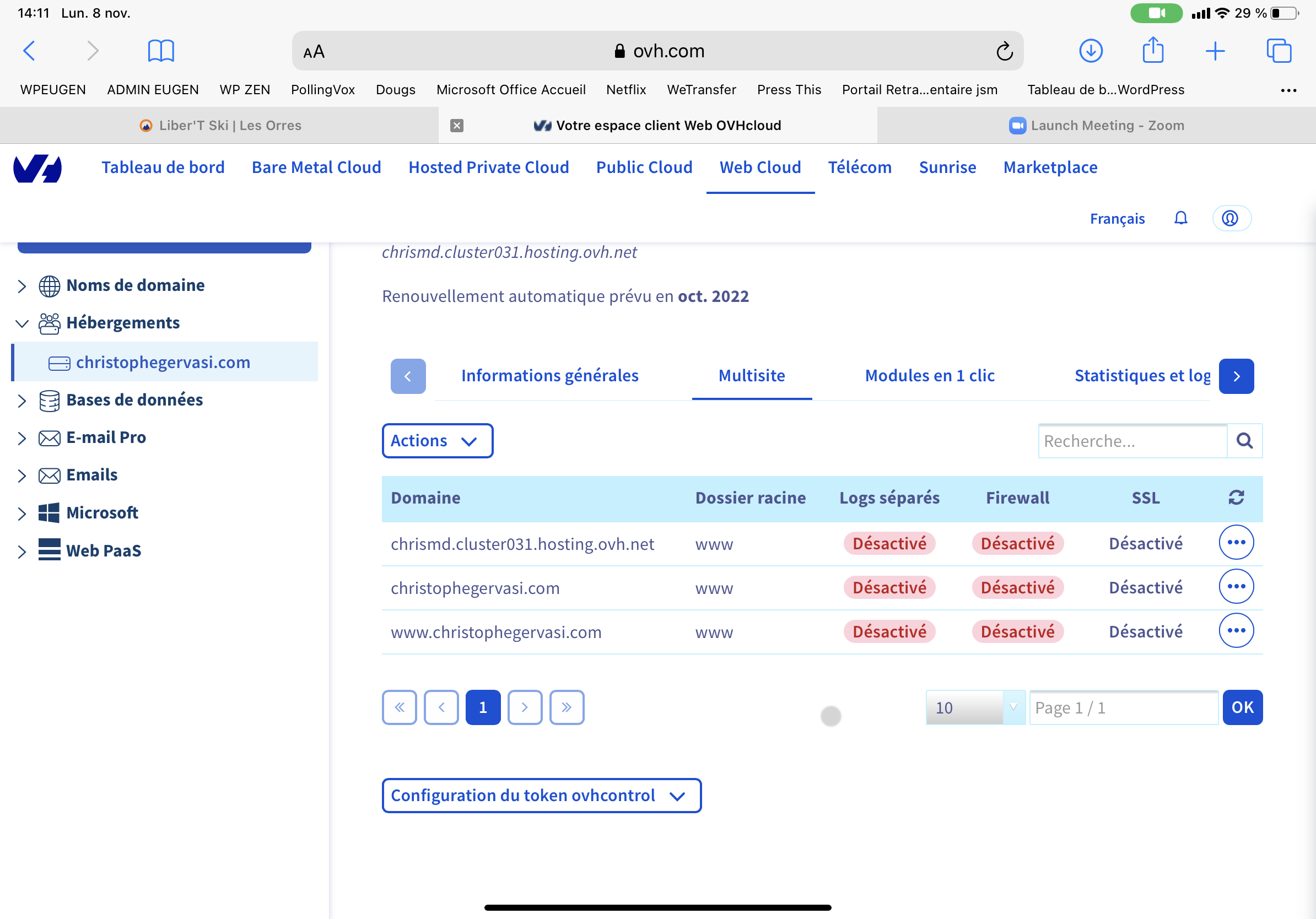 Pouvez-vous coller dans cette conversation une copie d'écran de votre espace client, section hébergement > multisite ?