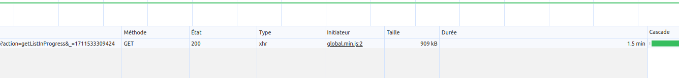 Voici la durée de ma requête ajax en me connectant a la base de données distante : (1.5min)