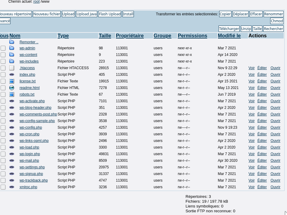 Déja puis je supprimer tous les autres dossiers présents sur mon FTP (hormis le www qui contient mon site a priori) :