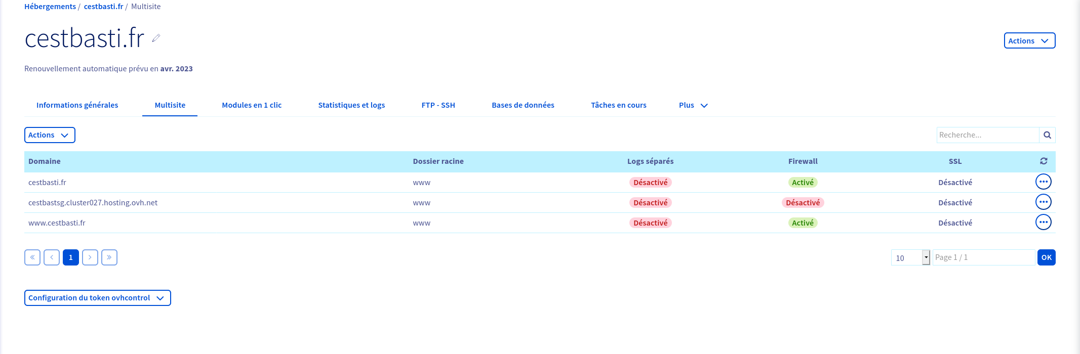 Vous avez quoi dans la section "multisite" de votre hébergement ?