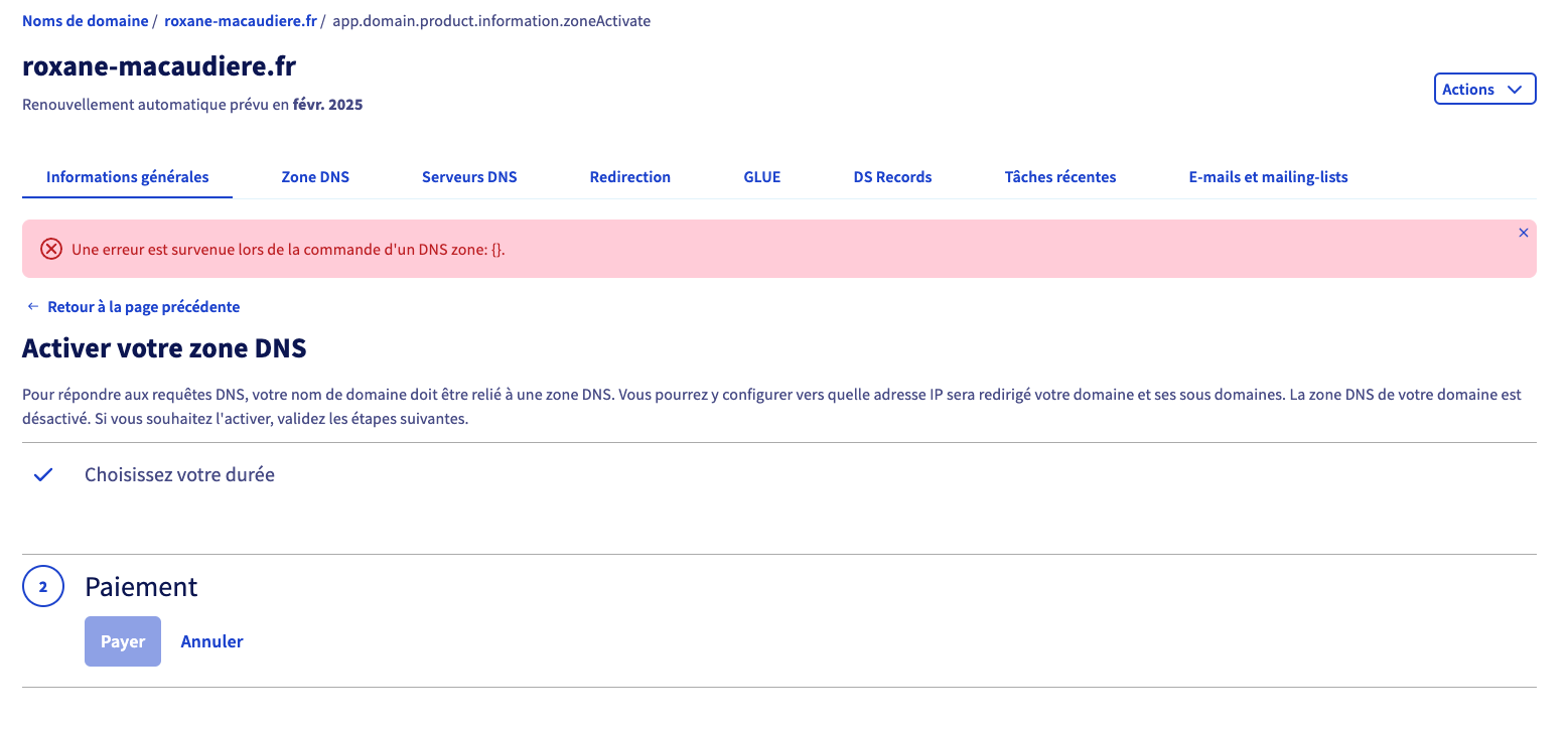 - Une erreur est survenue lors de l'activation de la zone DNS