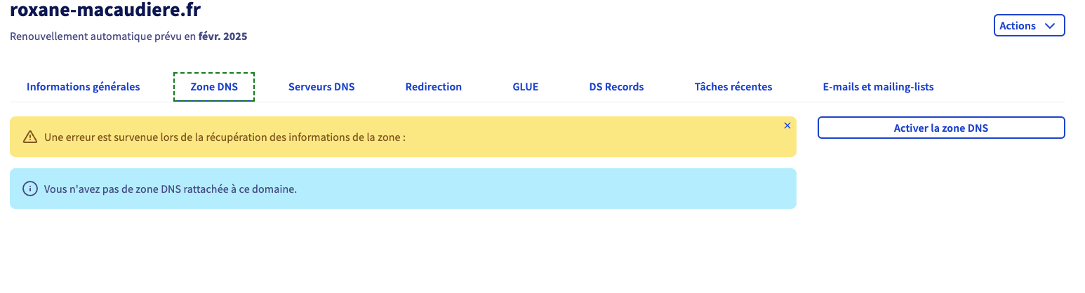 - Problème pour activer la zone DNS