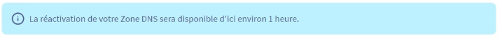 La réactivation de votre Zone DNS sera disponible d'ici environ 1 heure. (cela fait plus de 48h)