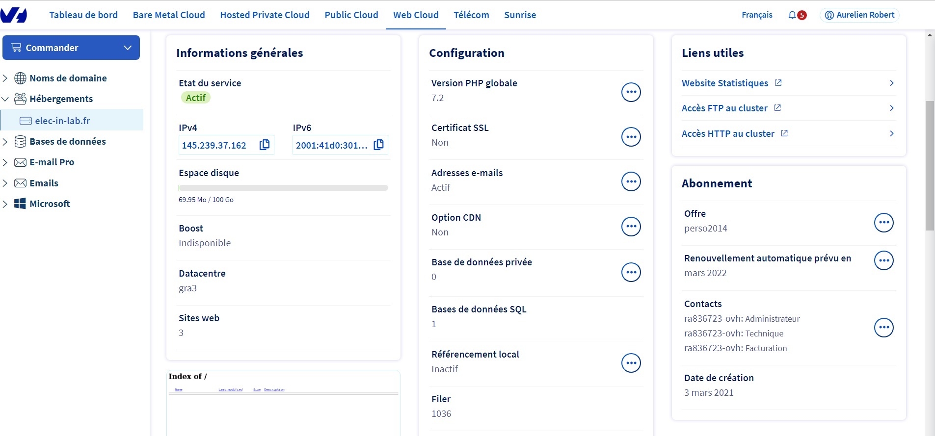 j'ai ensuite acheté un hébergement (le 03/03/21)