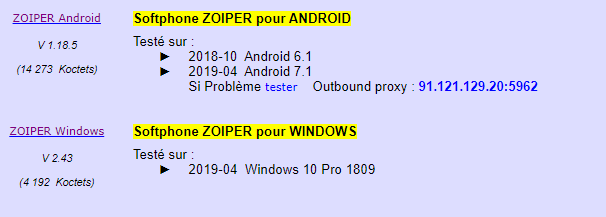 Commencer par tester avec ZOIPER sur PC Windows :