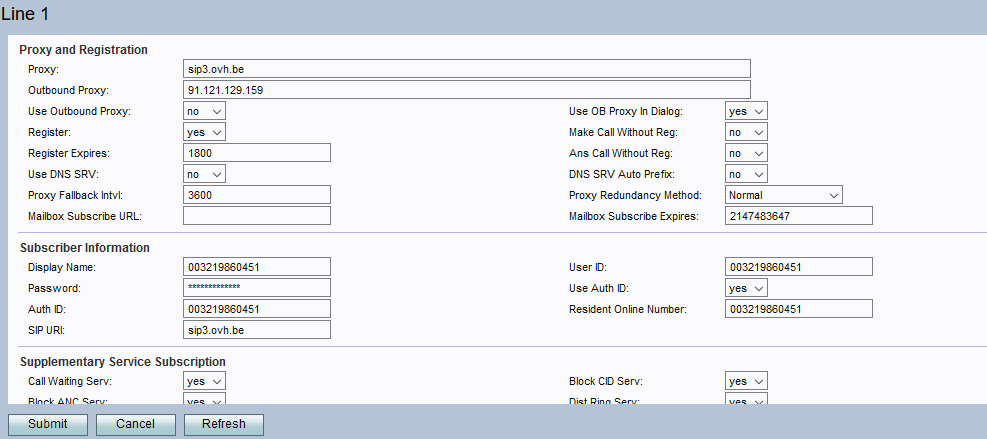 - Voice Mail Server : sip3.ovh.be