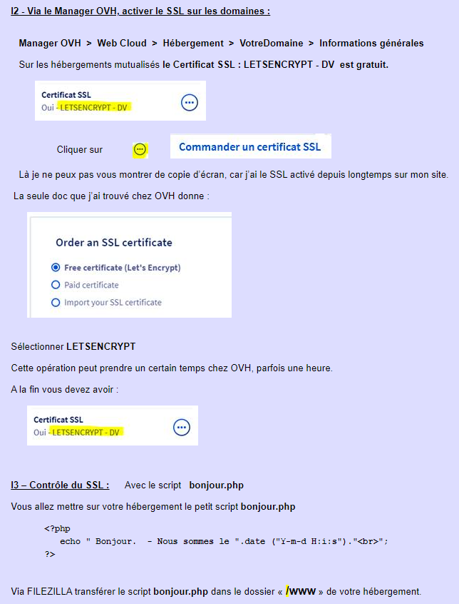 I1 - Via le Manager OVH, activer le SSL sur les domaines :