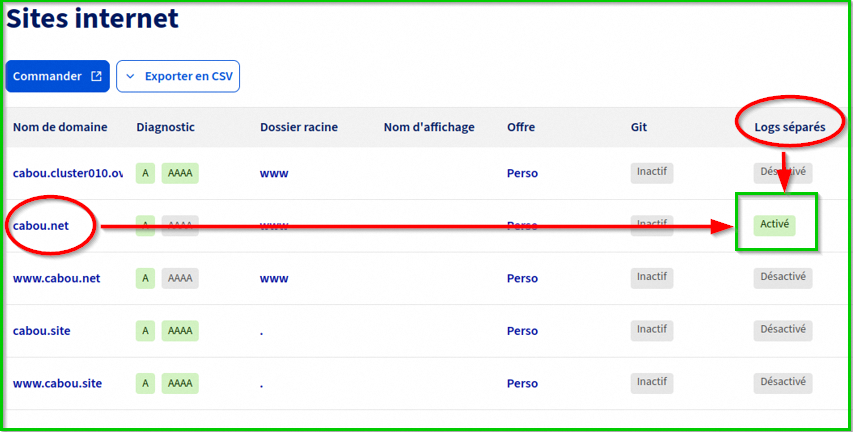 Alors effectivement; depuis la rubrique "Sites internet" ça apparaît toujours ainsi mais je n'ai pas trouvé comment le désactiver. Par contre quand je prend la rubrique par Hébergement/Cabou.net/multisite ça s'affiche "désactivé" partout (capture)