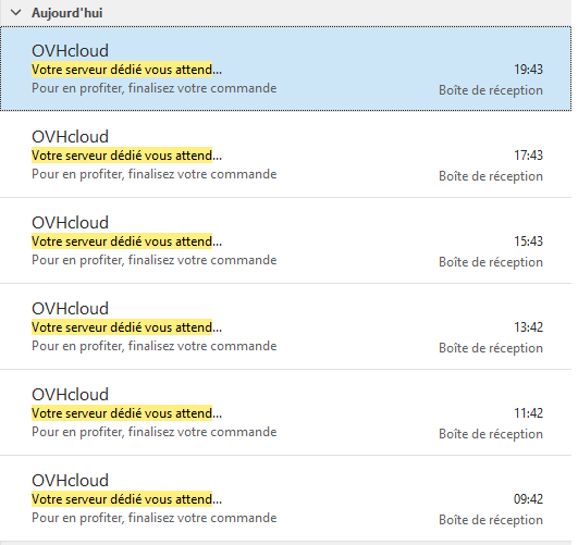 "Votre serveur dédié vous attend..." : envois de relances trop nombreux !